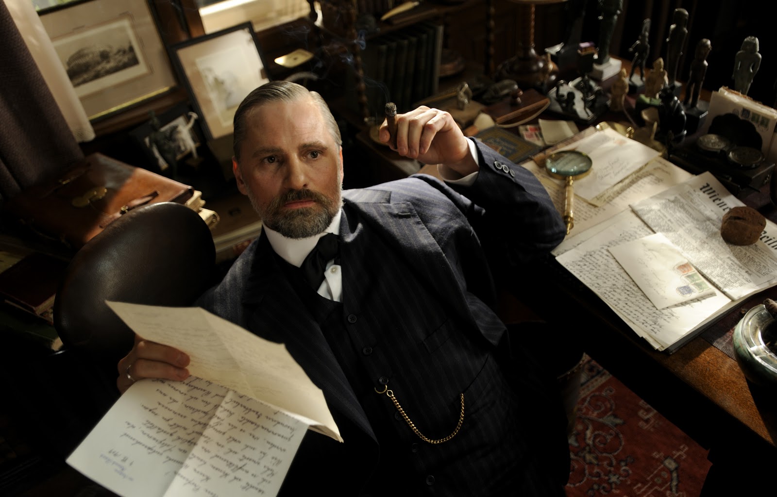 Obwohl Eine dunkle Begierde gerade Jungs Verhältnis zu Spielrein fokussiert, sind es doch gerade die Begegnungen mit Freud, die das gefühlte Zentrum ausmachen. Es ist ihre Besessenheit für ihre Forschung, die sie letztlich entzweit. Während sich Freud auf das Feld der Sexualforschung beschränken will, versucht Jung die Wissenschaft in unerkundete Territorien weiterzutreiben. Beide scheitern an ihrer eigenen Besessenheit, sei sie nun sexuell oder wissenschaftlich. Faszinierend zeigt Cronenberg wie die Pioniere des Unterbewussten an ihren menschlichen Unzulänglichkeiten untergehen und schafft es gleichzeitig an diesen beiden Menschen die Mentalitätsgeschichte des frühen 20. Jahrhunderts aufzuhängen. Die letzten Jahre des KuK-Reichs, die seine strahlendsten sein sollten.