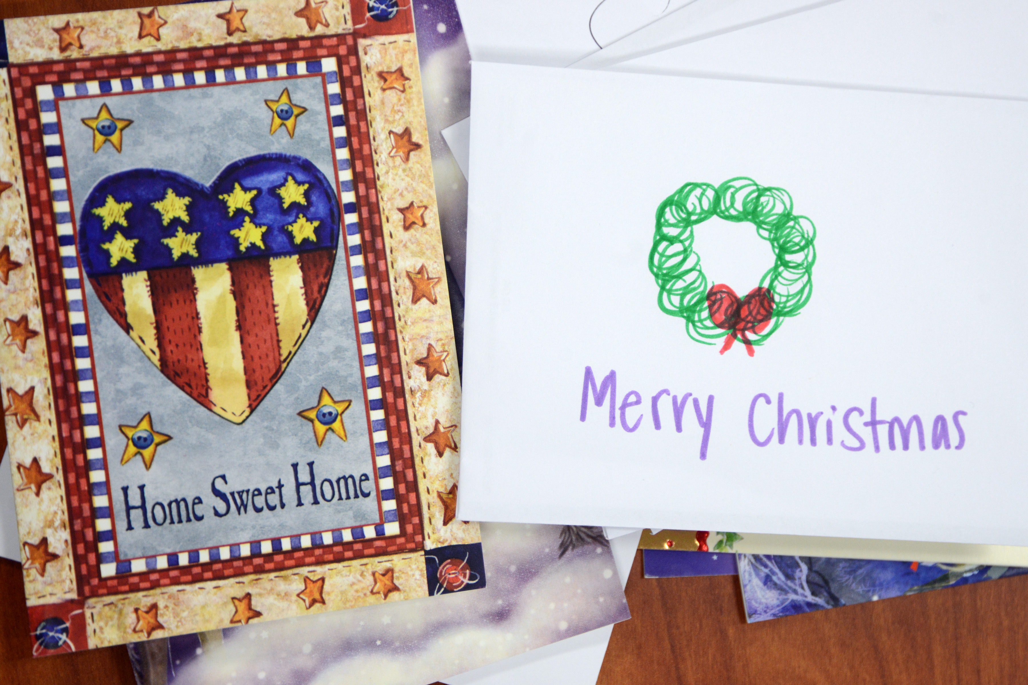 Senior Janae Werdlow decorating a card for elementary students.